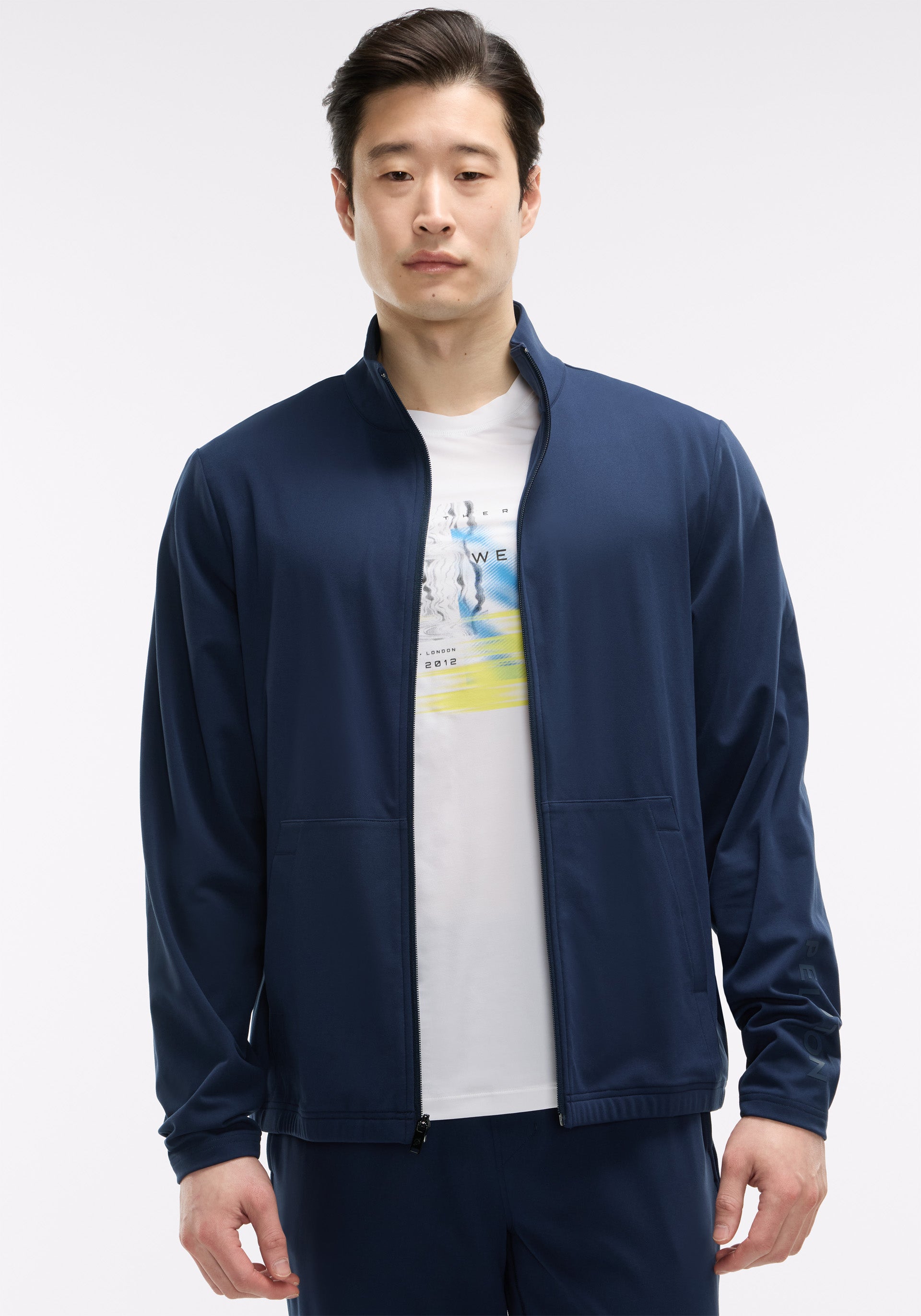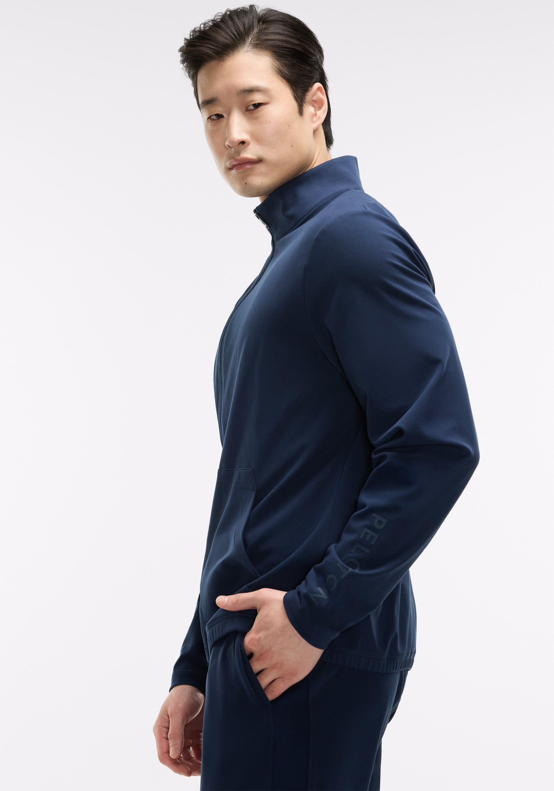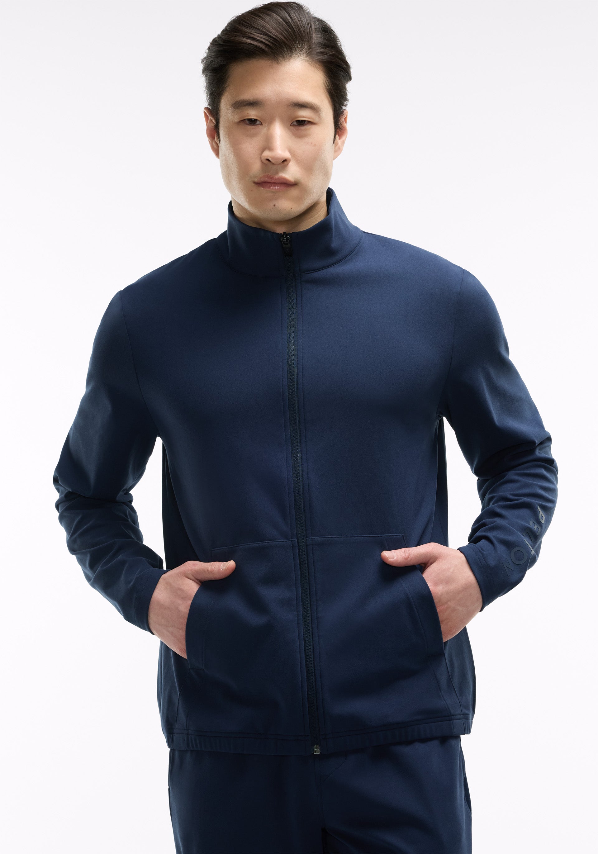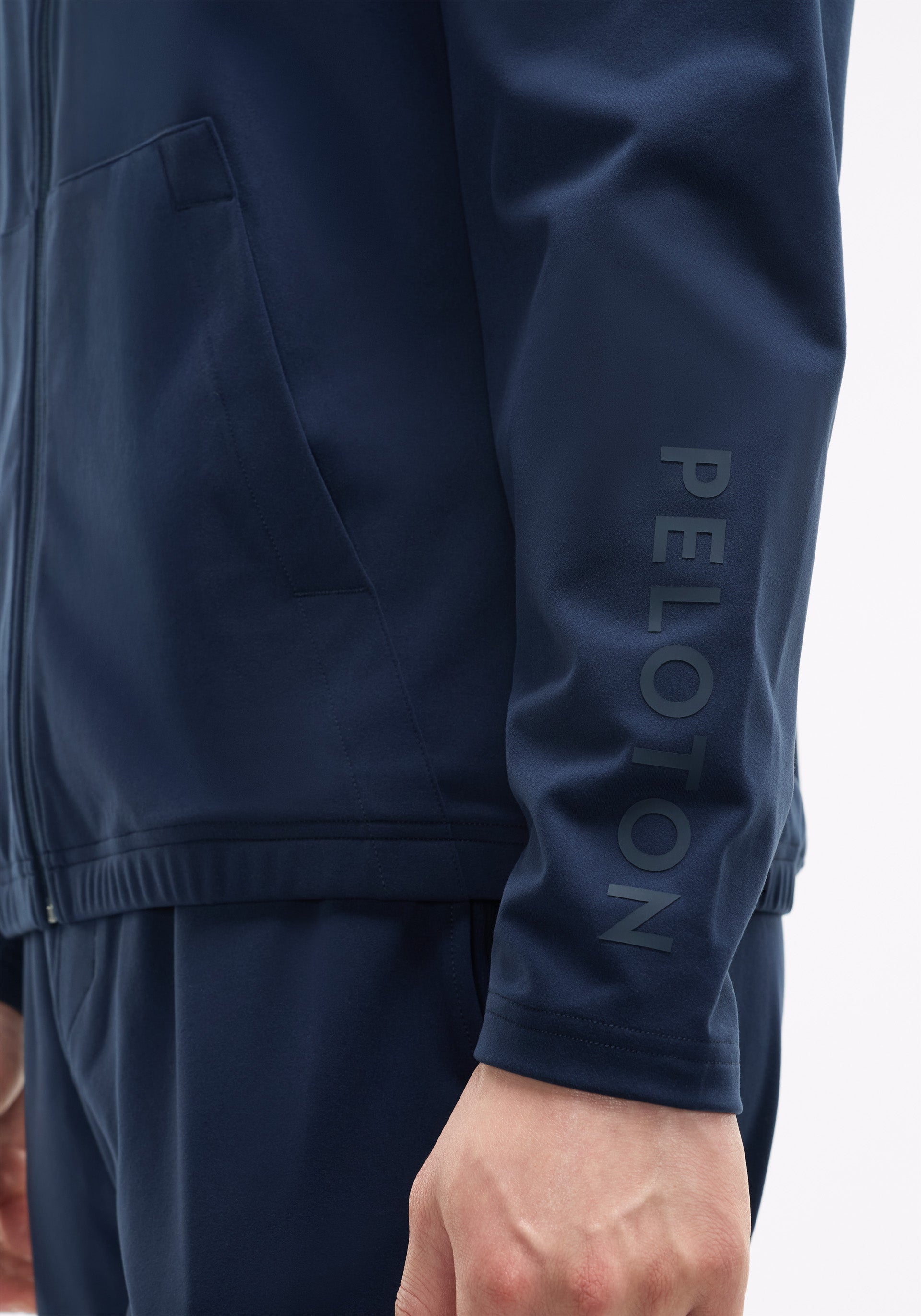 Tonal Peloton wordmark at left sleeve