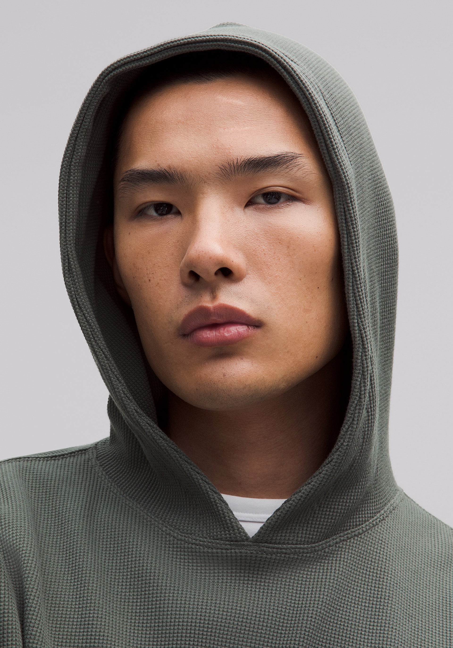 Low-key timeless. A classic waffle-knit texture gives this cotton-blend hoodie a soft structure that elevates joggers and makes trousers look chill.