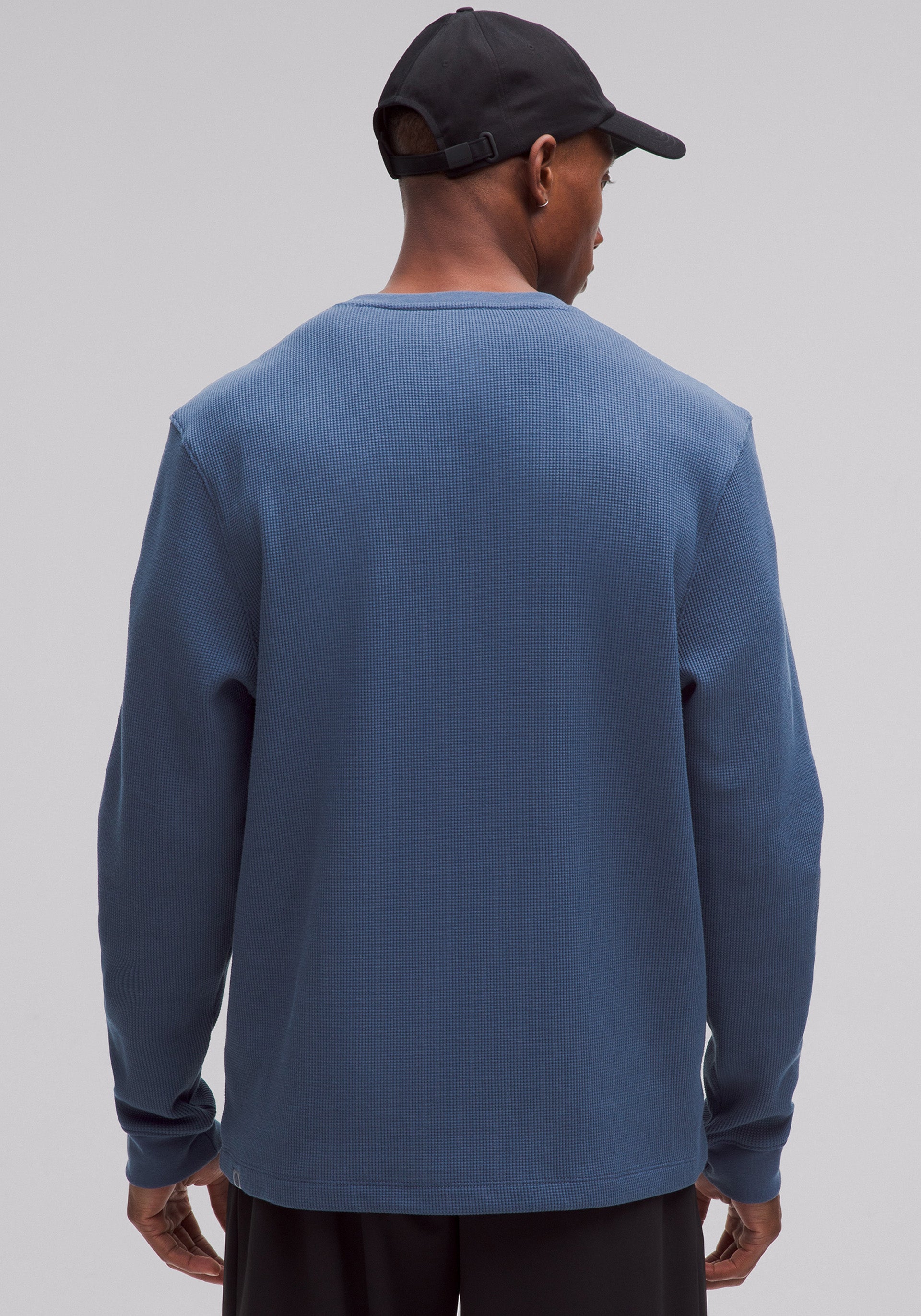 Cotton-Blend Waffle Knit Long-Sleeve Shirt