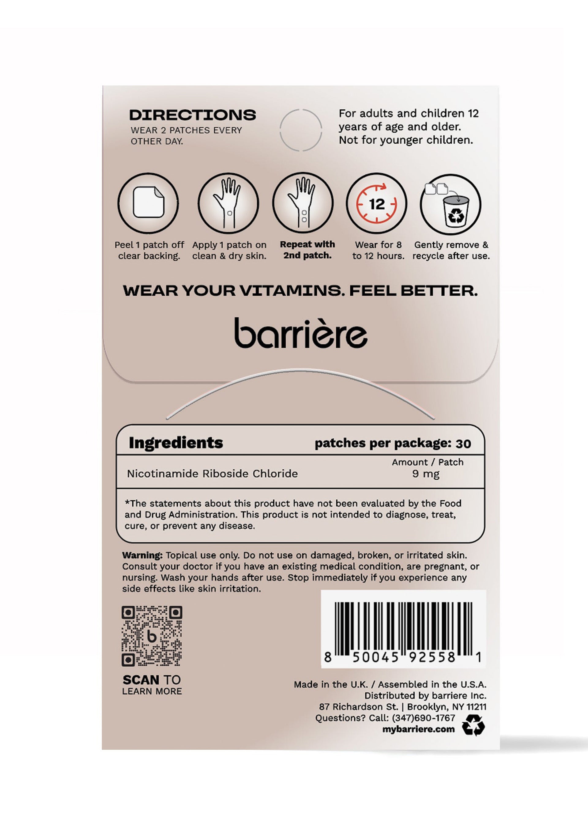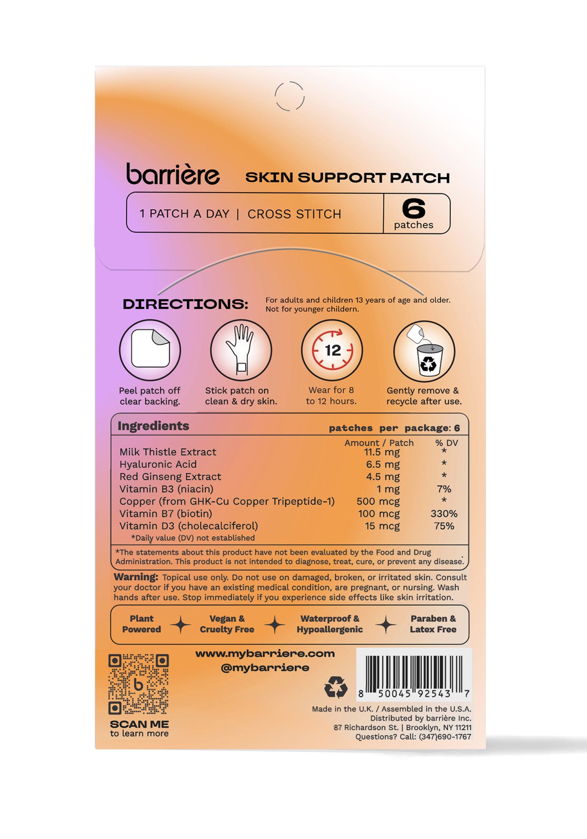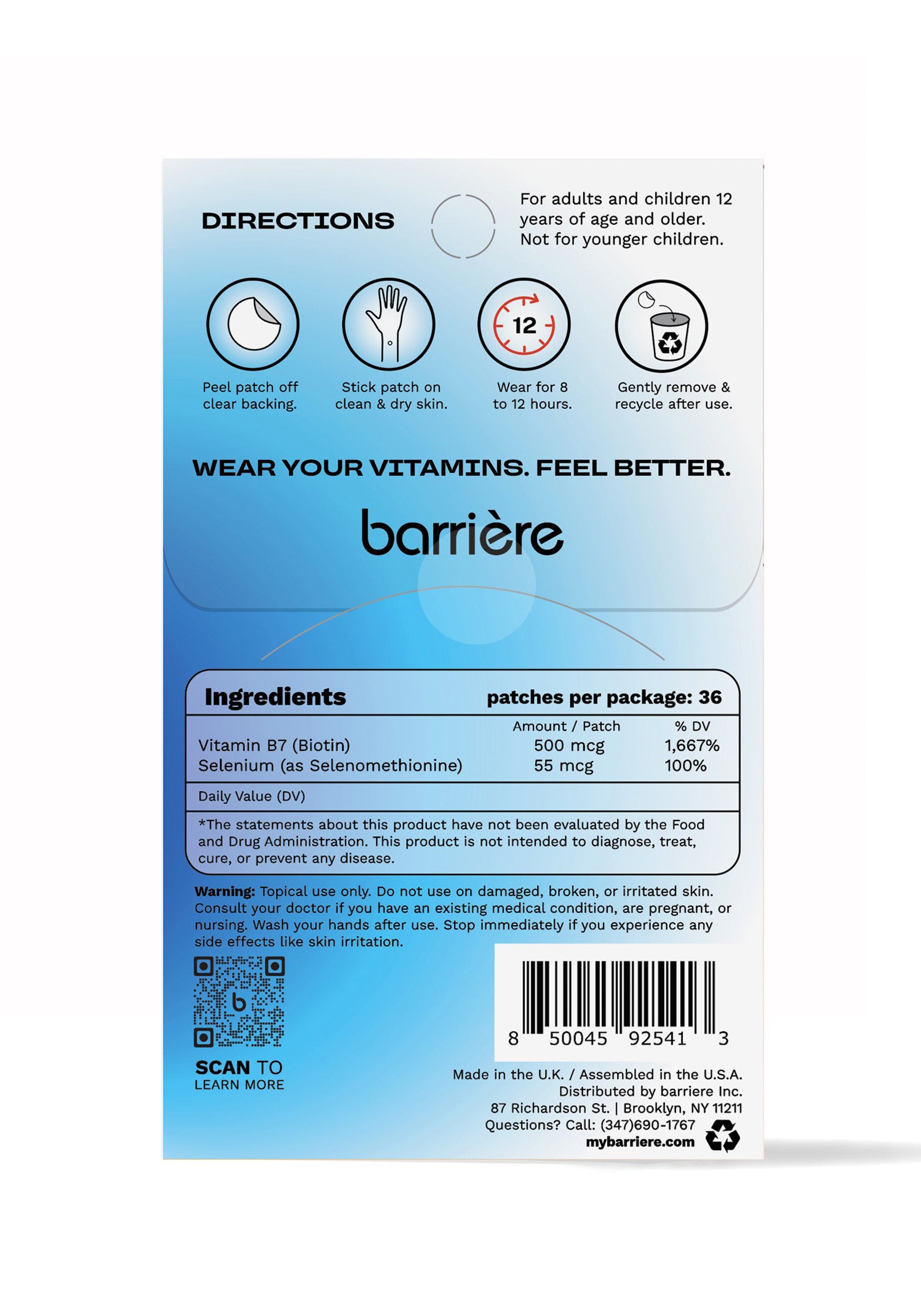 Take care of your skin from the inside out with targeted and clean barriere vitamin patches that feature NAD+, Biotin, Hyaluronic Acid, Niacin and more. This bundle of barriere's 3 bestselling skincare focused patches includes: