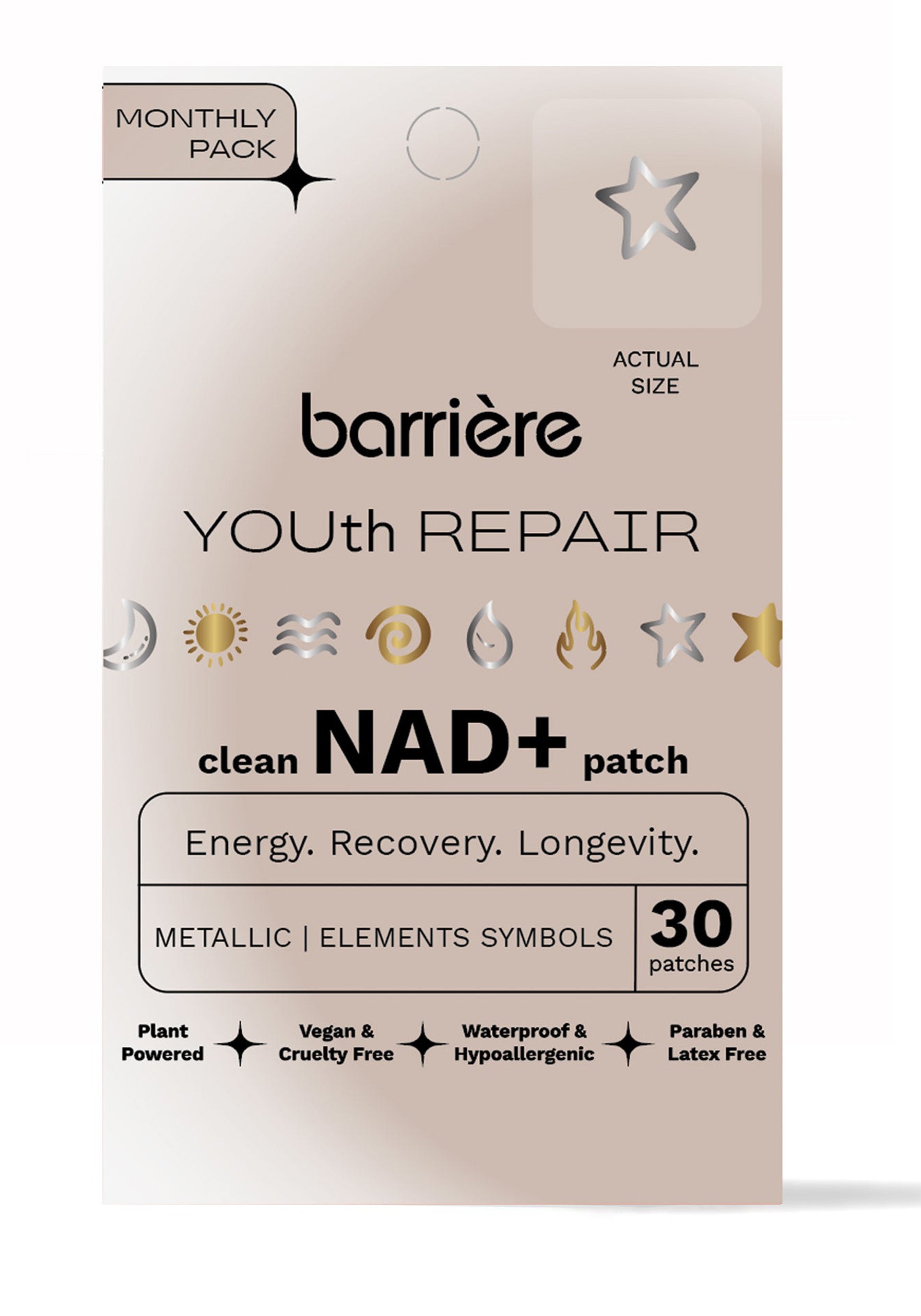 Youth Repair NAD+ Patch 30 pack in metallic element symbols