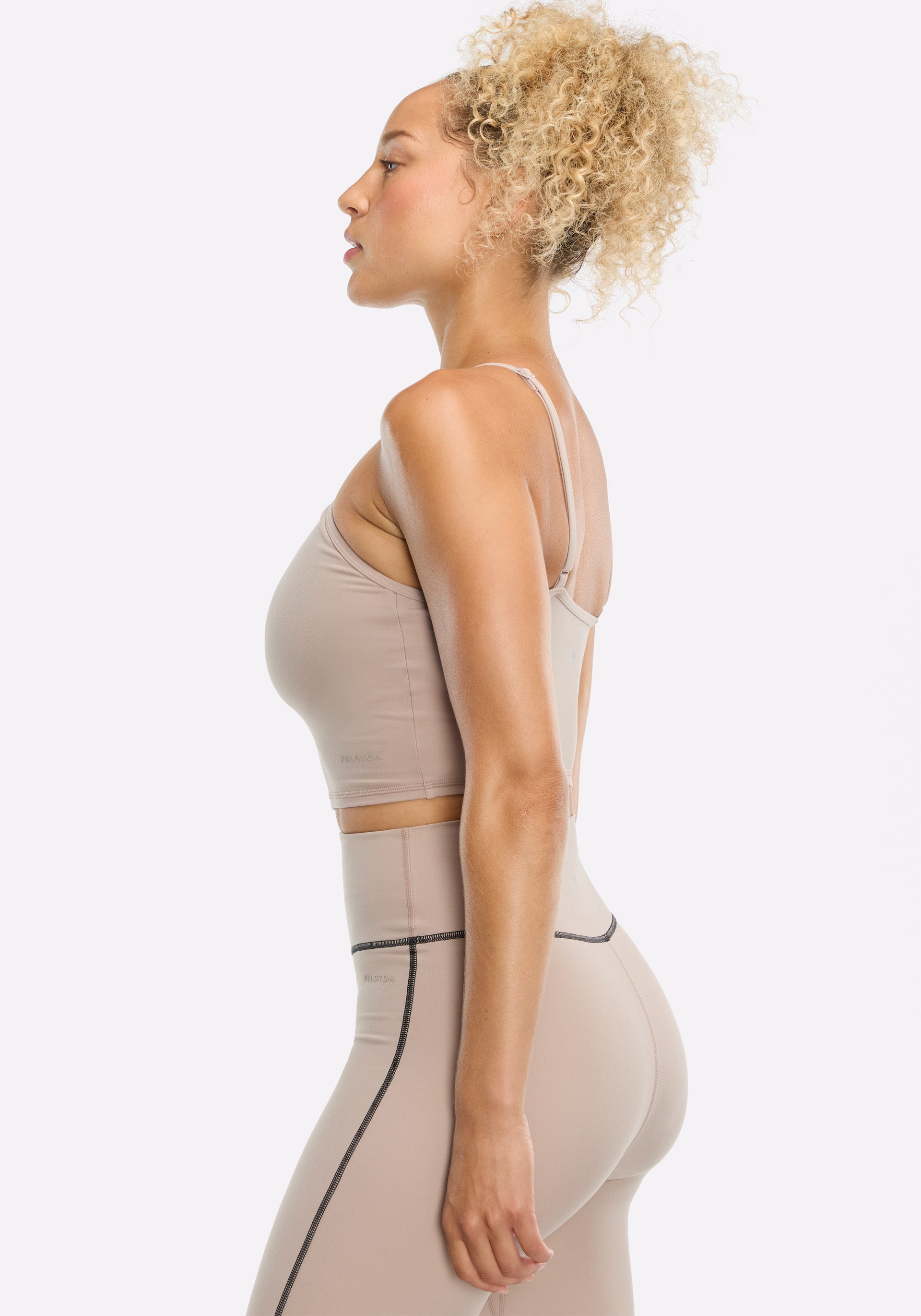 Longline bra with halter neck, adjustable straps and interior cup pockets