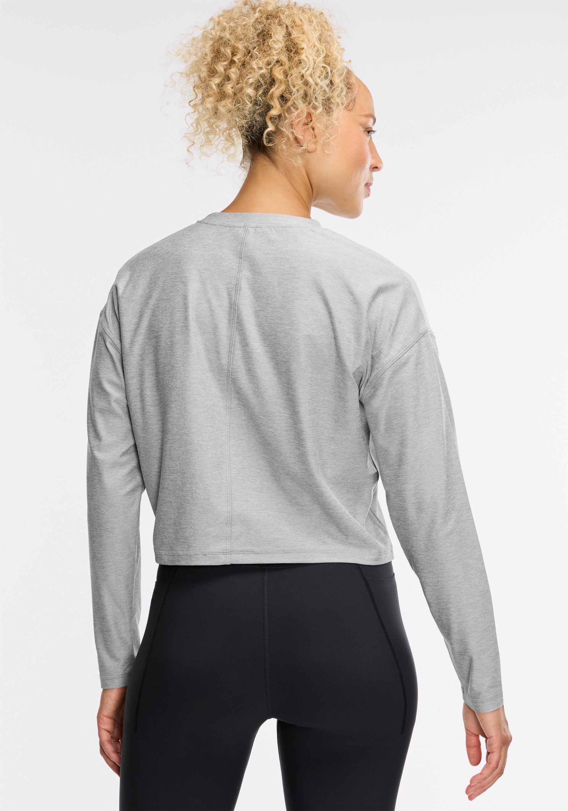 Crewneck, long sleeve with drop shoulder, back seam detailing, and a meet and greet length