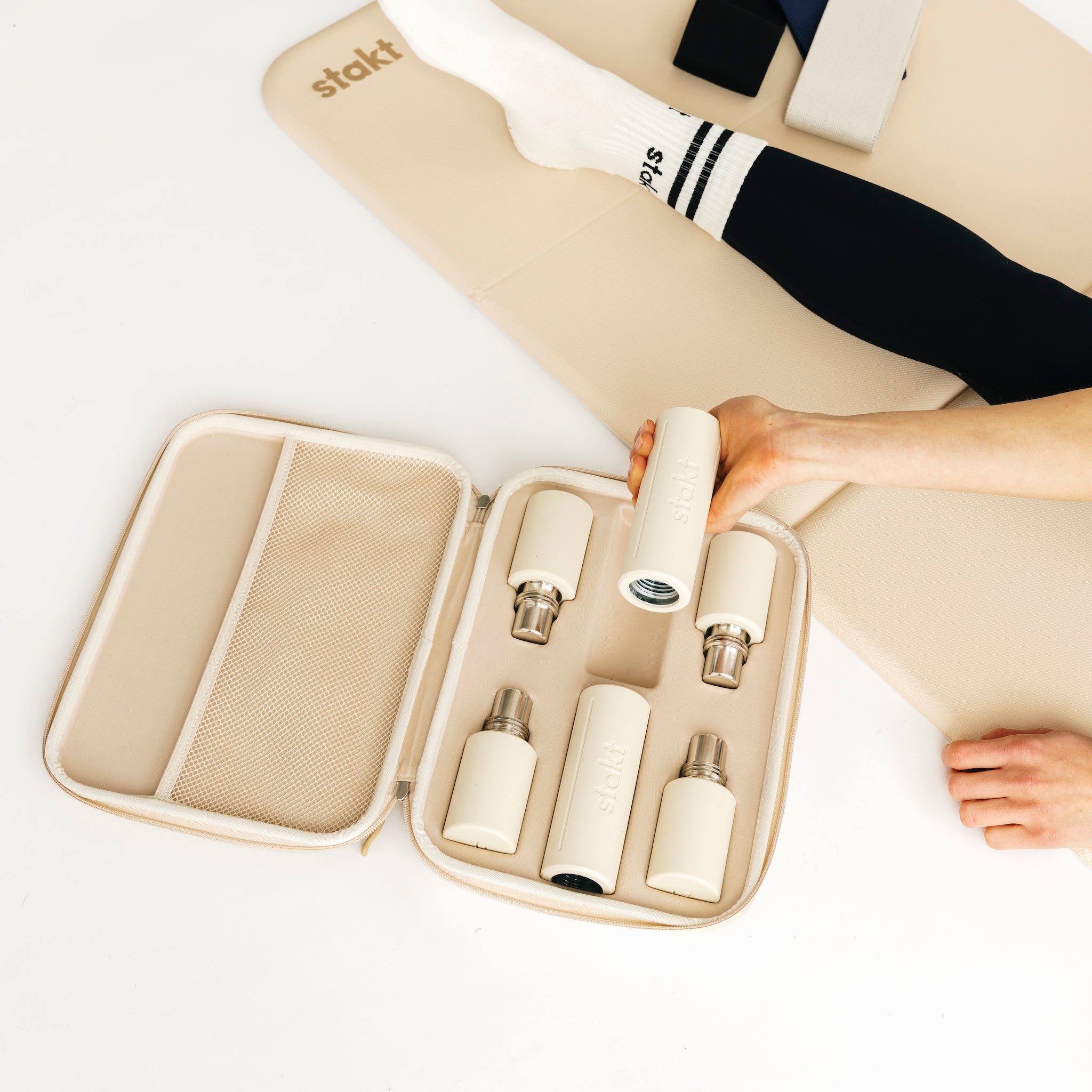 Store and carry your Stakt Weights with ease. This compact, durable case offers secure storage and a comfortable handle for effortless transport. Whether you're heading to the studio, traveling, or just stashing them post-sweat, your weights now have a place to call home.