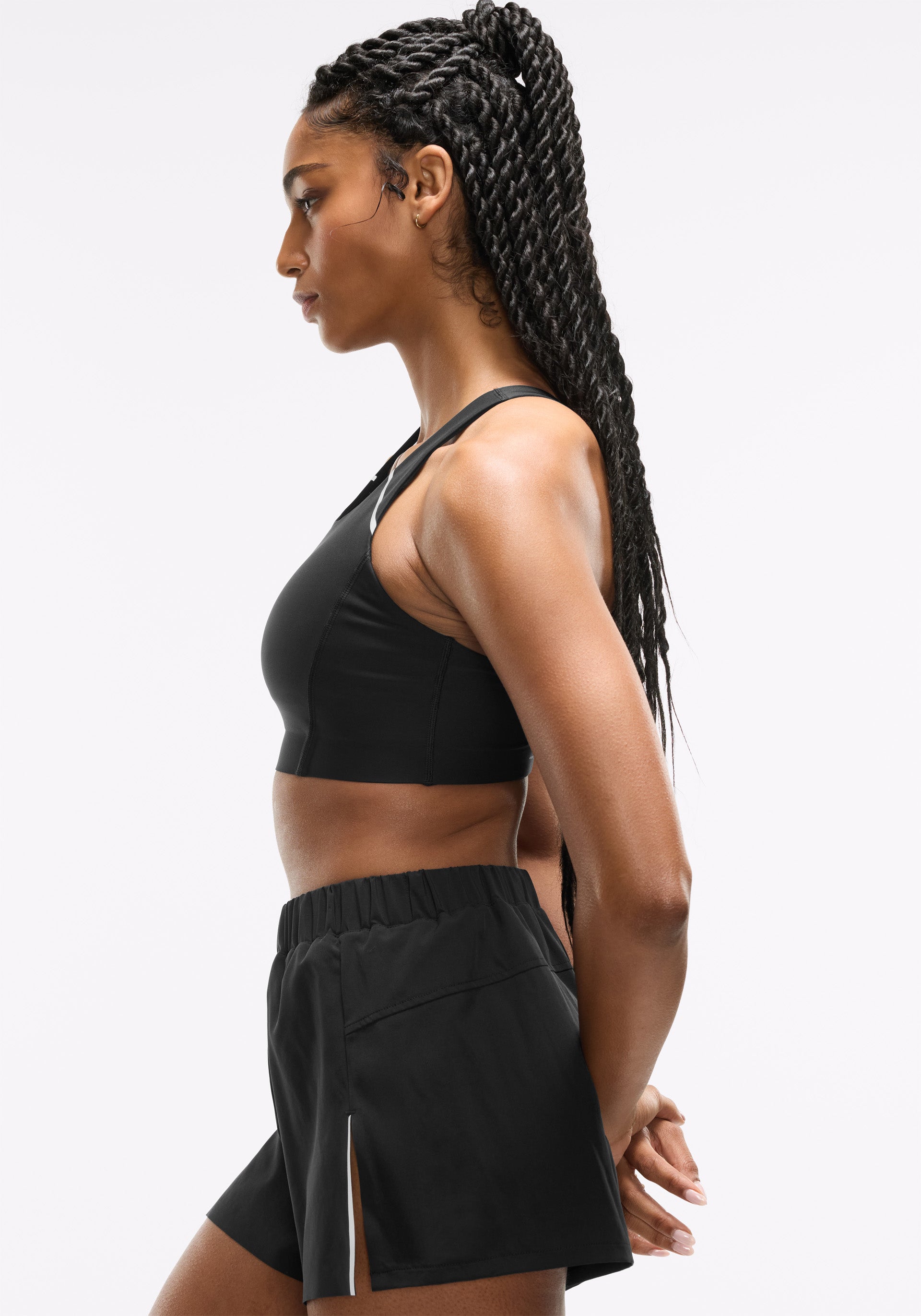 • Racer bra with open back keyhole for added ventilation and reflective style lines