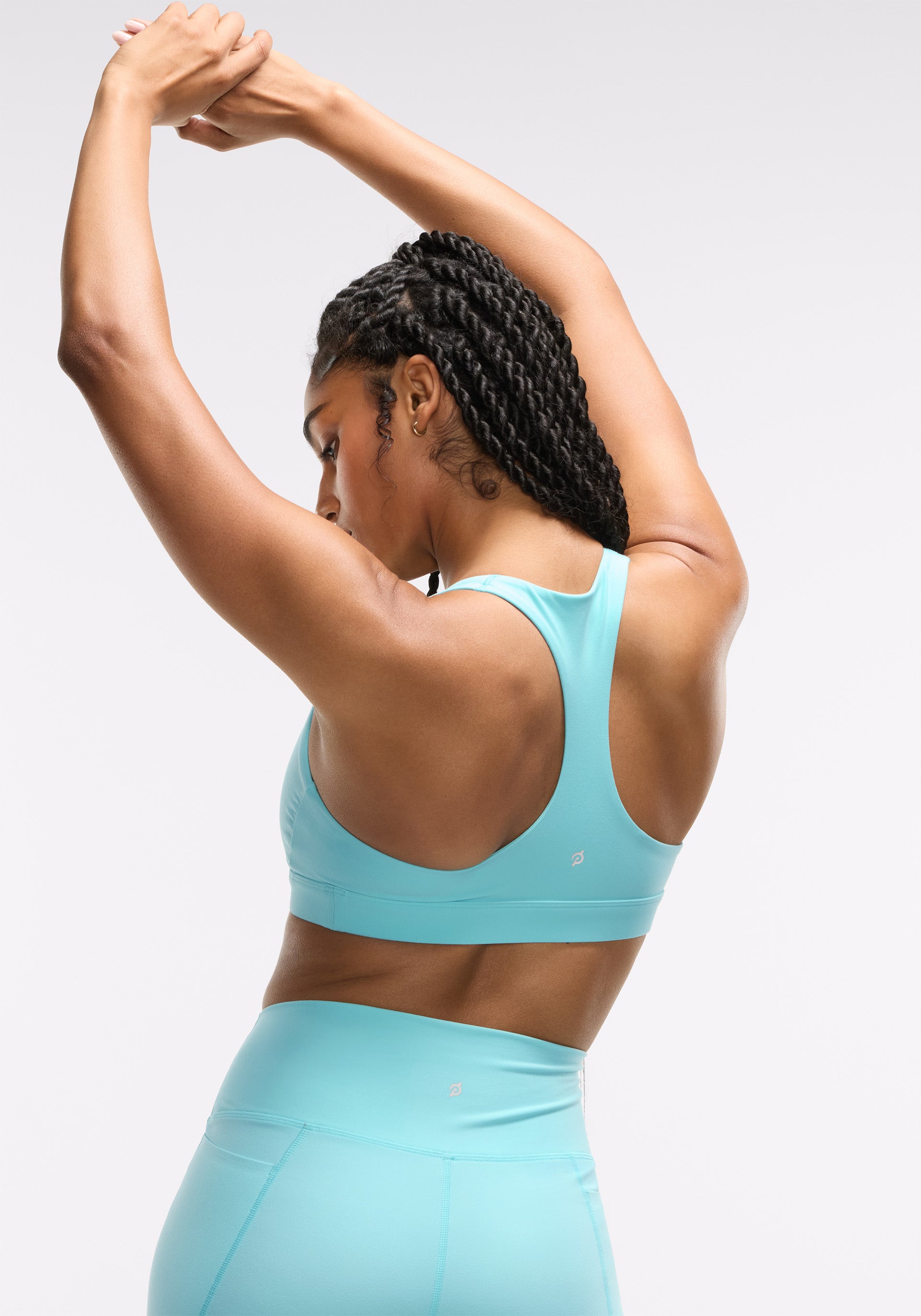• Silver, dotted Peloton wordmark at center front