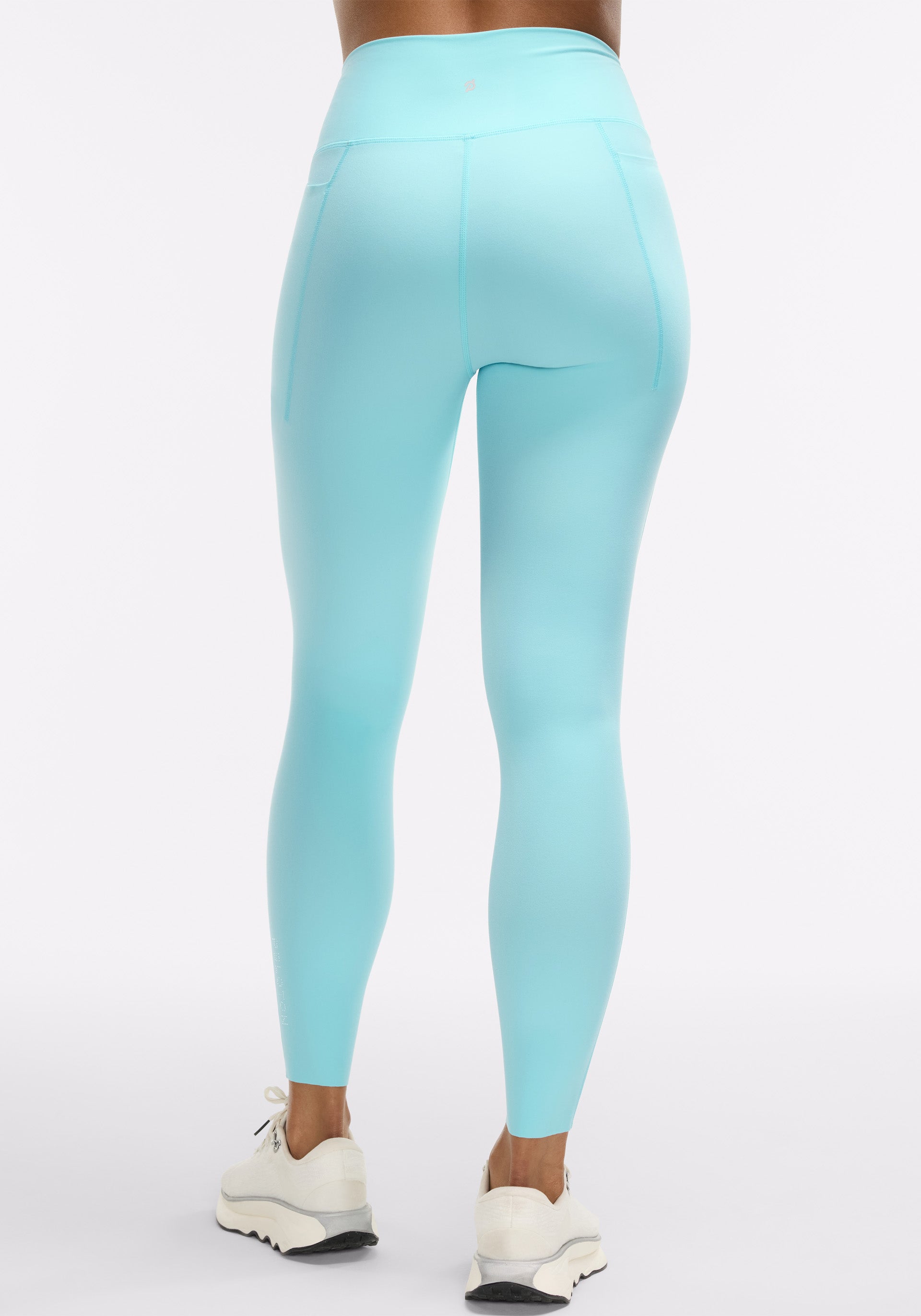 High rise legging with medium compression, side pockets, and elongated gusset