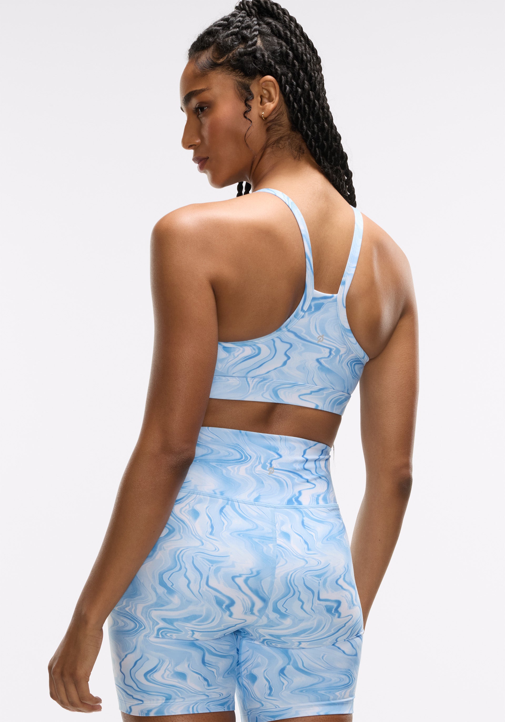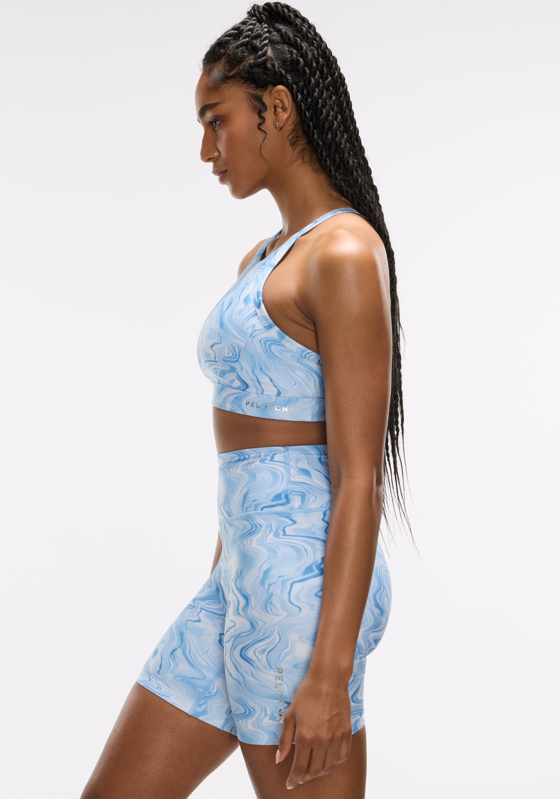 Low-Medium support bra with high neck, front racer detail, and interior cup pockets