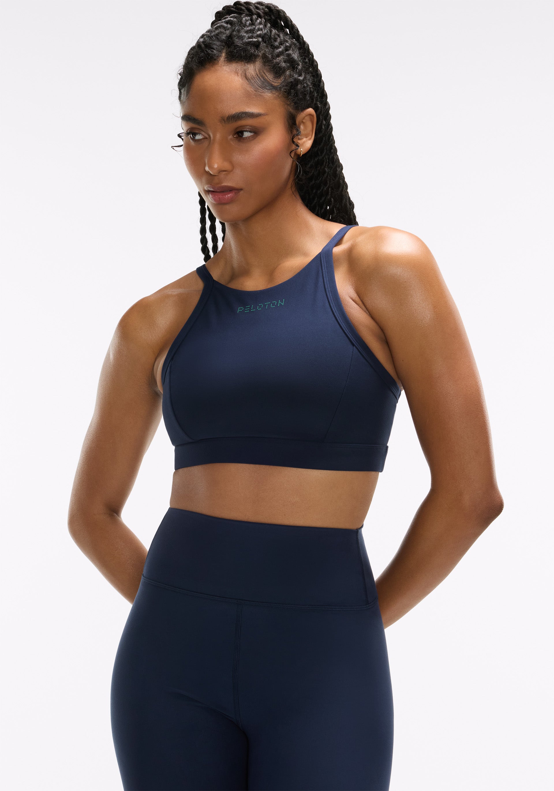 Contrast, dotted Peloton wordmark at center neck