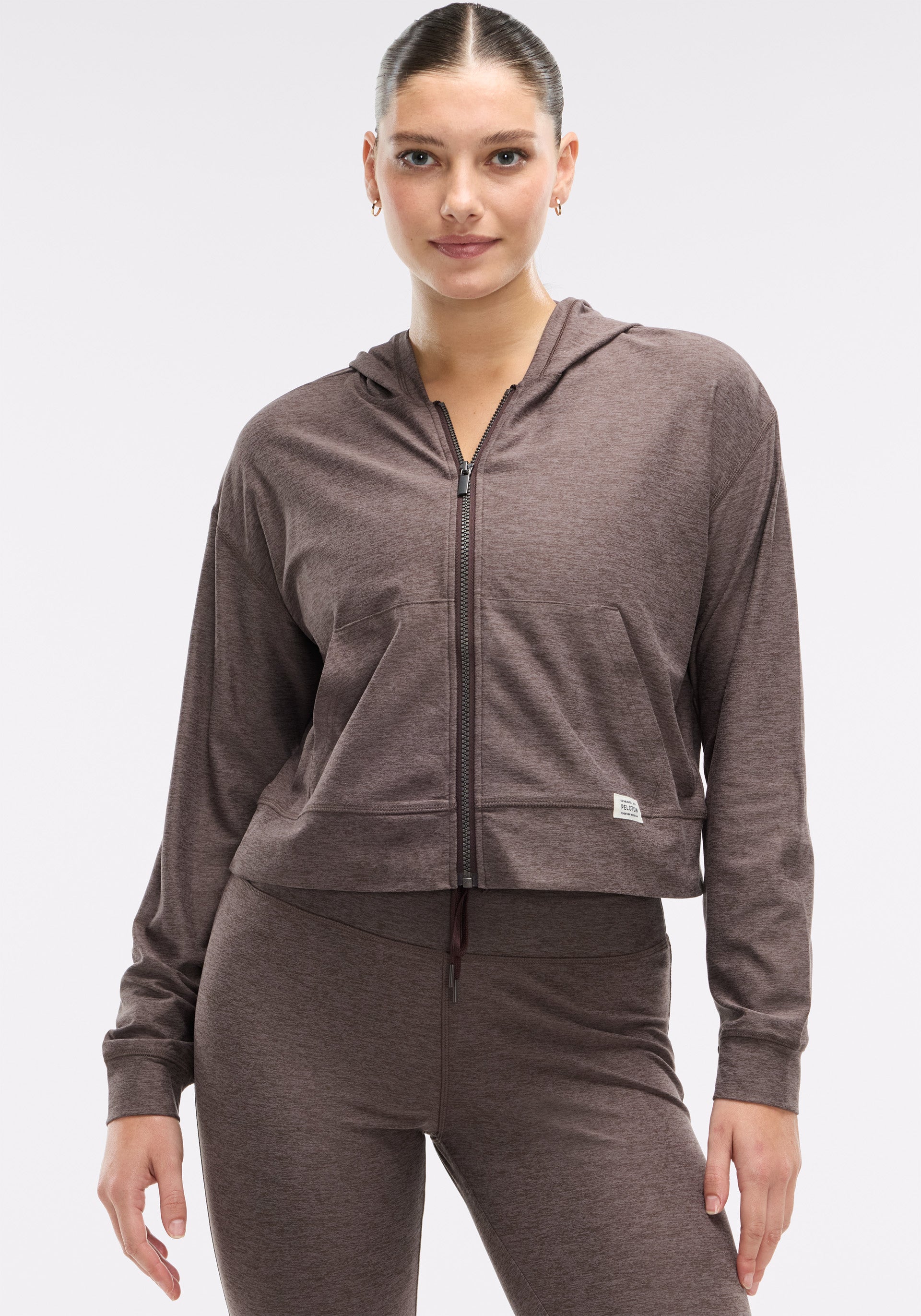 • Full zip, boxy sweatshirt with meet and greet length, side pockets, and self fabric cuffs and bottom hem
