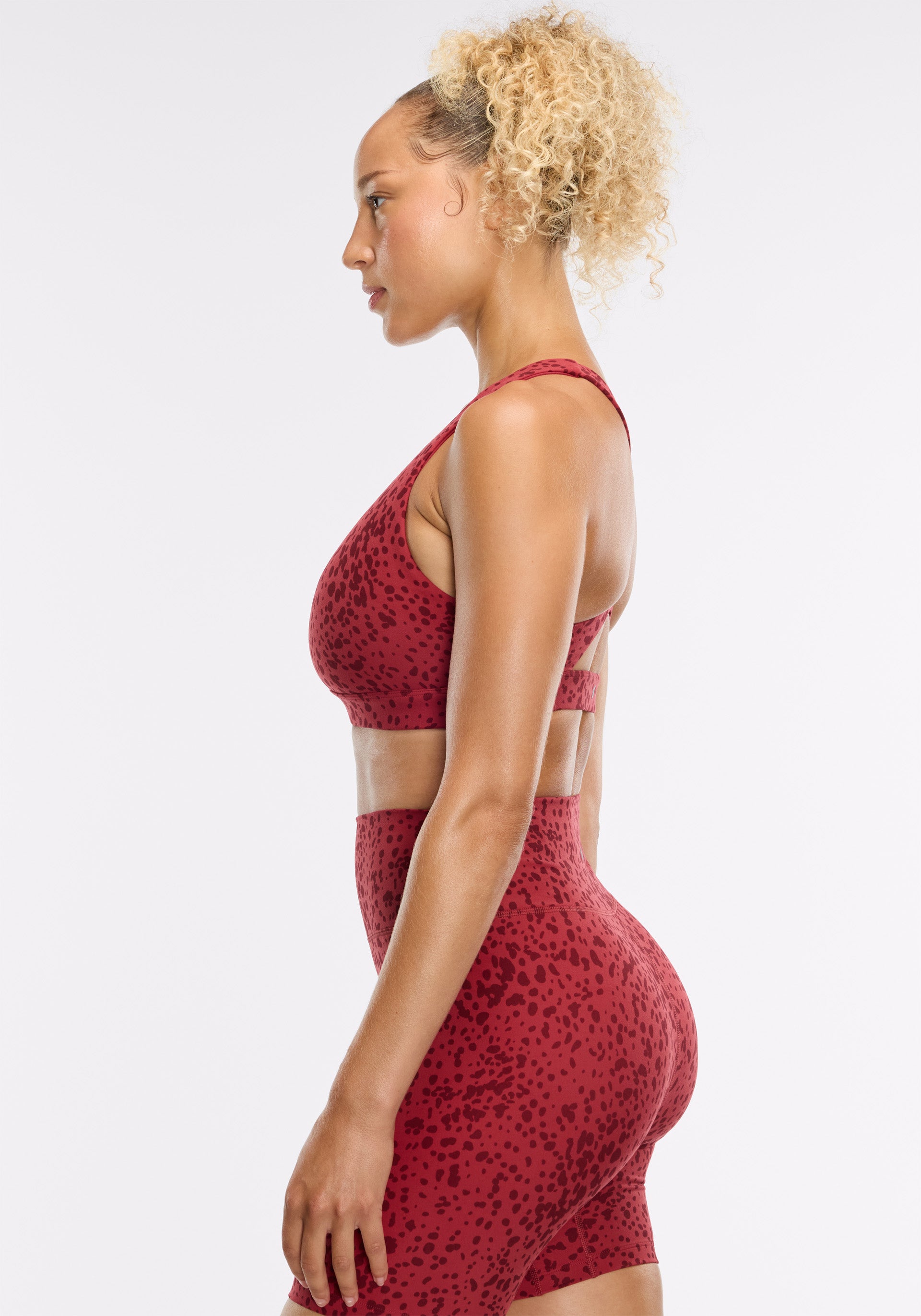High rise, 7" inseam bike short with medium compression, back stash pocket, and elongated gusset