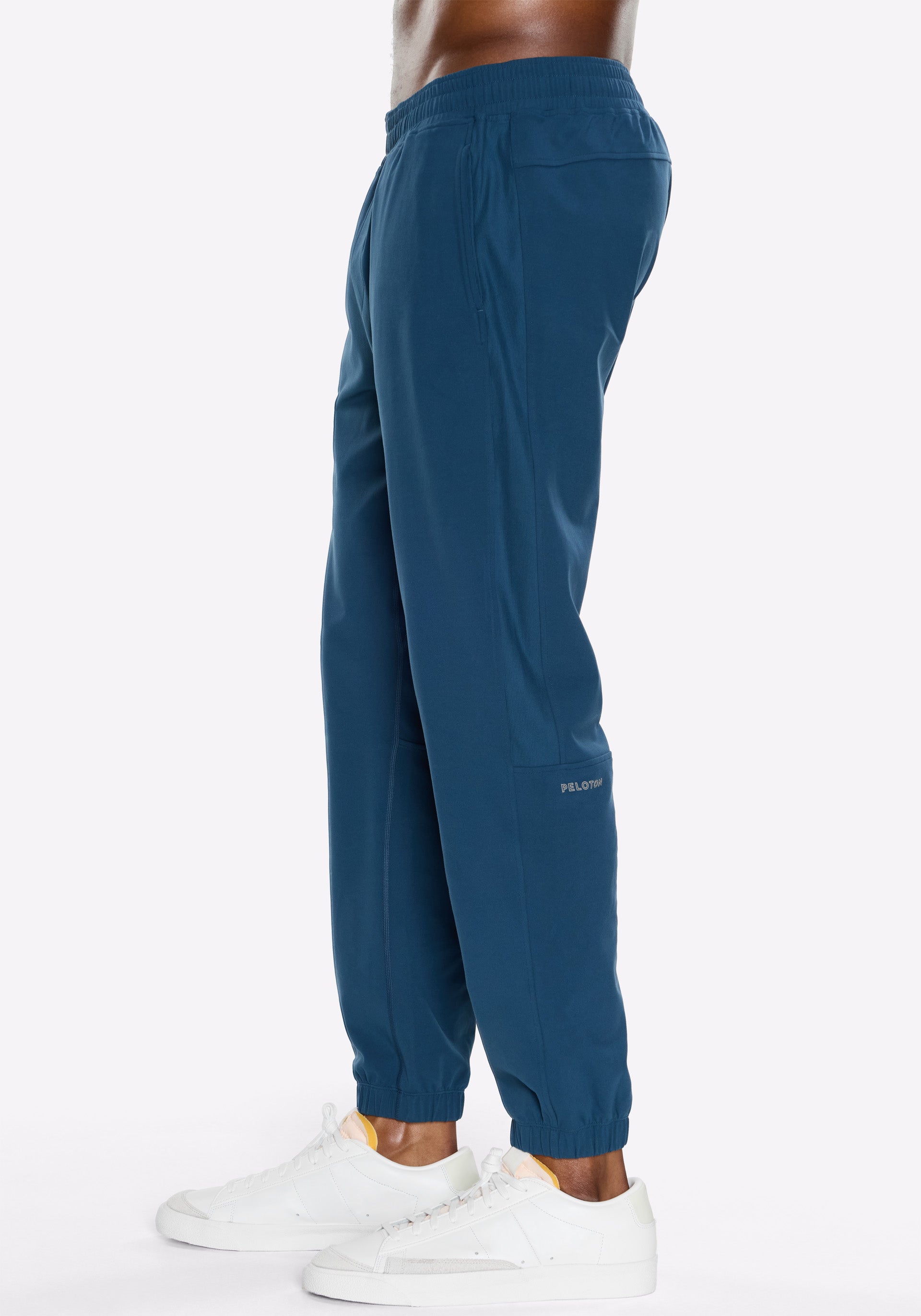 Peloton wordmark at back left calf