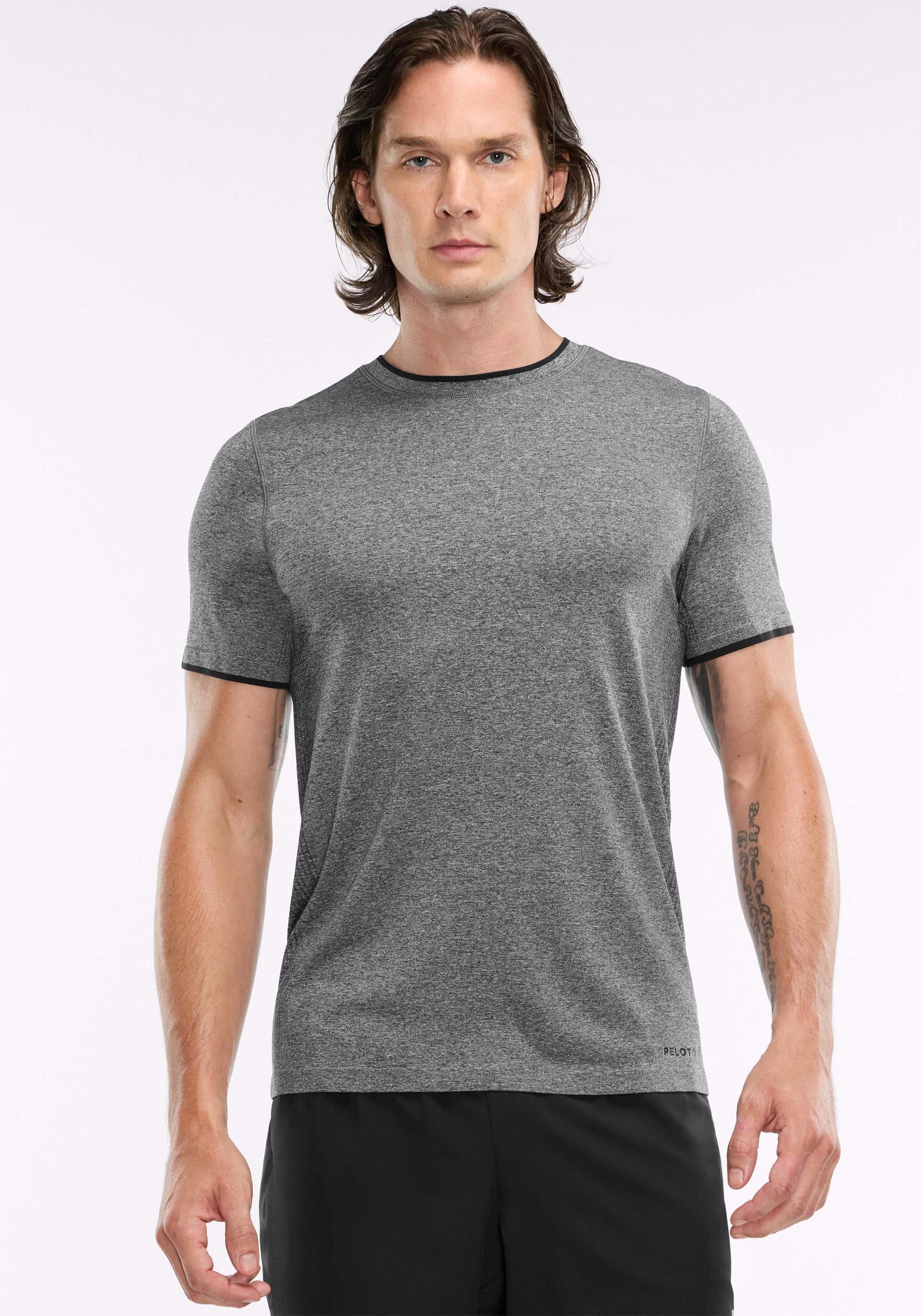 • Peloton wordmark at bottom left hem