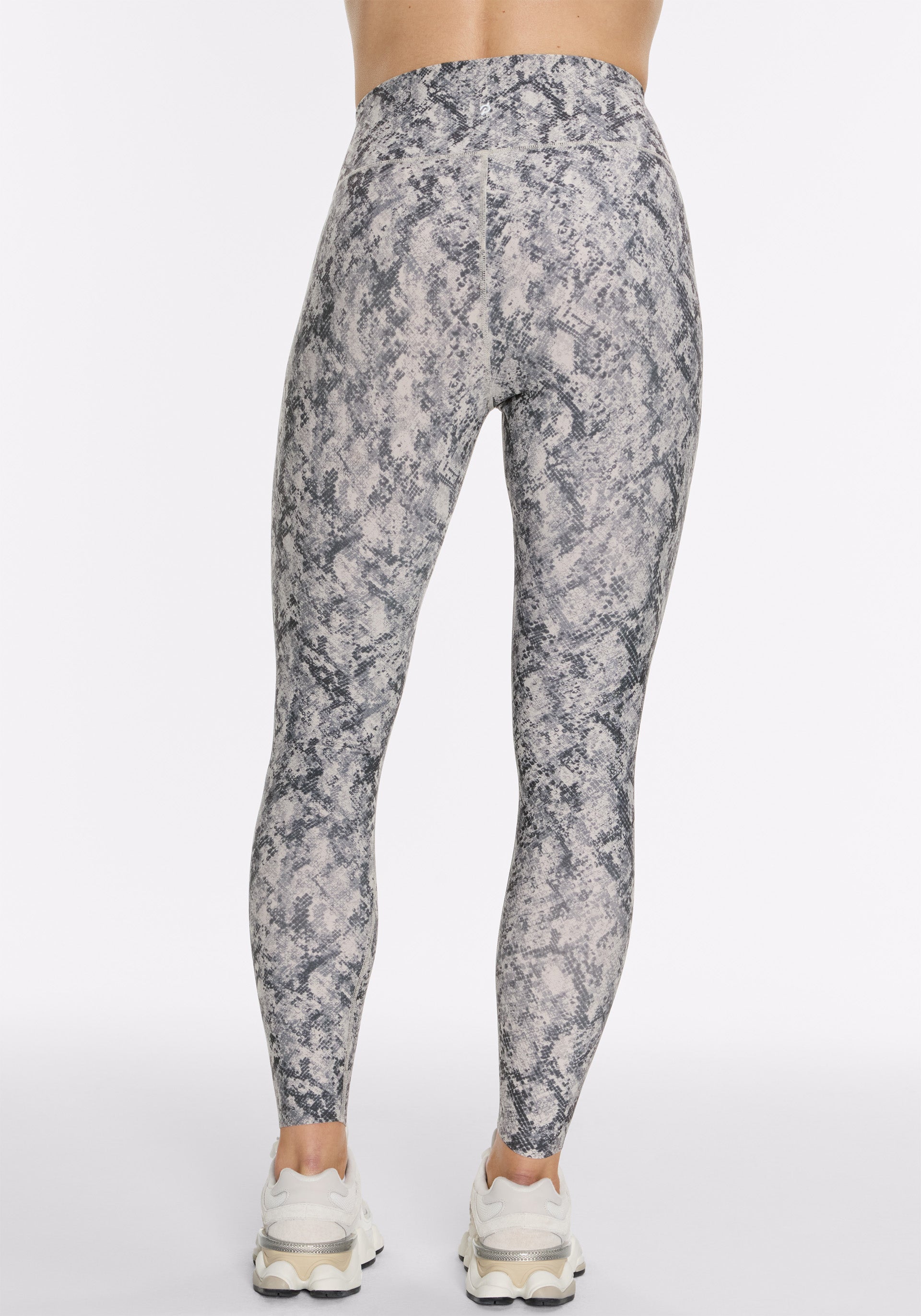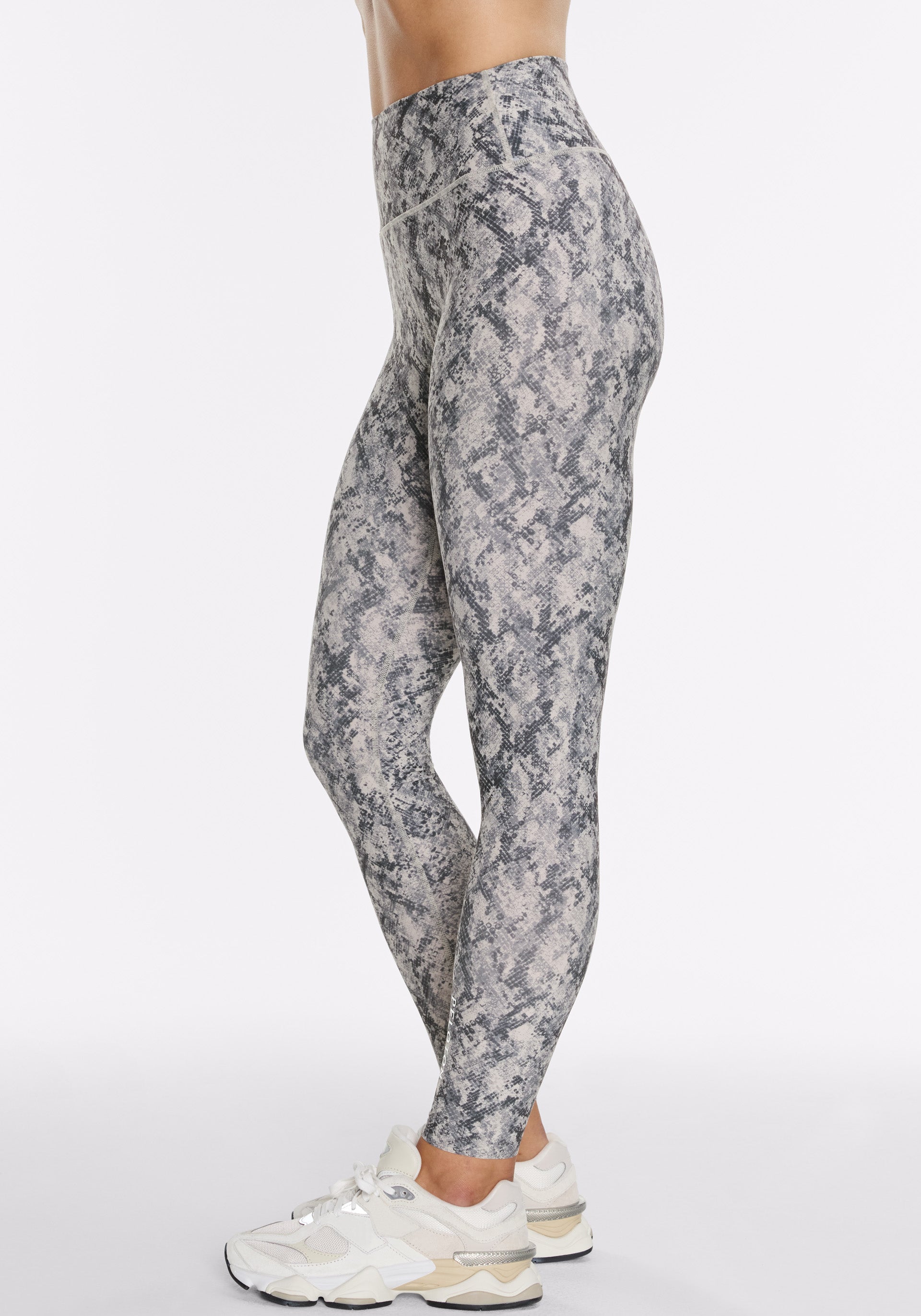 High rise, 25" inseam legging with medium compression, back stash pocket, and elongated gusset
